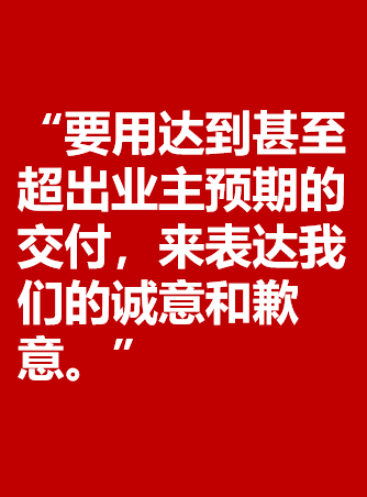 918博天堂深知,918博天堂在很多方面,与业主的期待仍有差距。对于这两年因为企业流动性问题带来的延期交付等问题,918博天堂也再次向业主们表达歉意,同时,918博天堂也将尽自己最大的努力,保交付、保品质,来给业主一个交代。